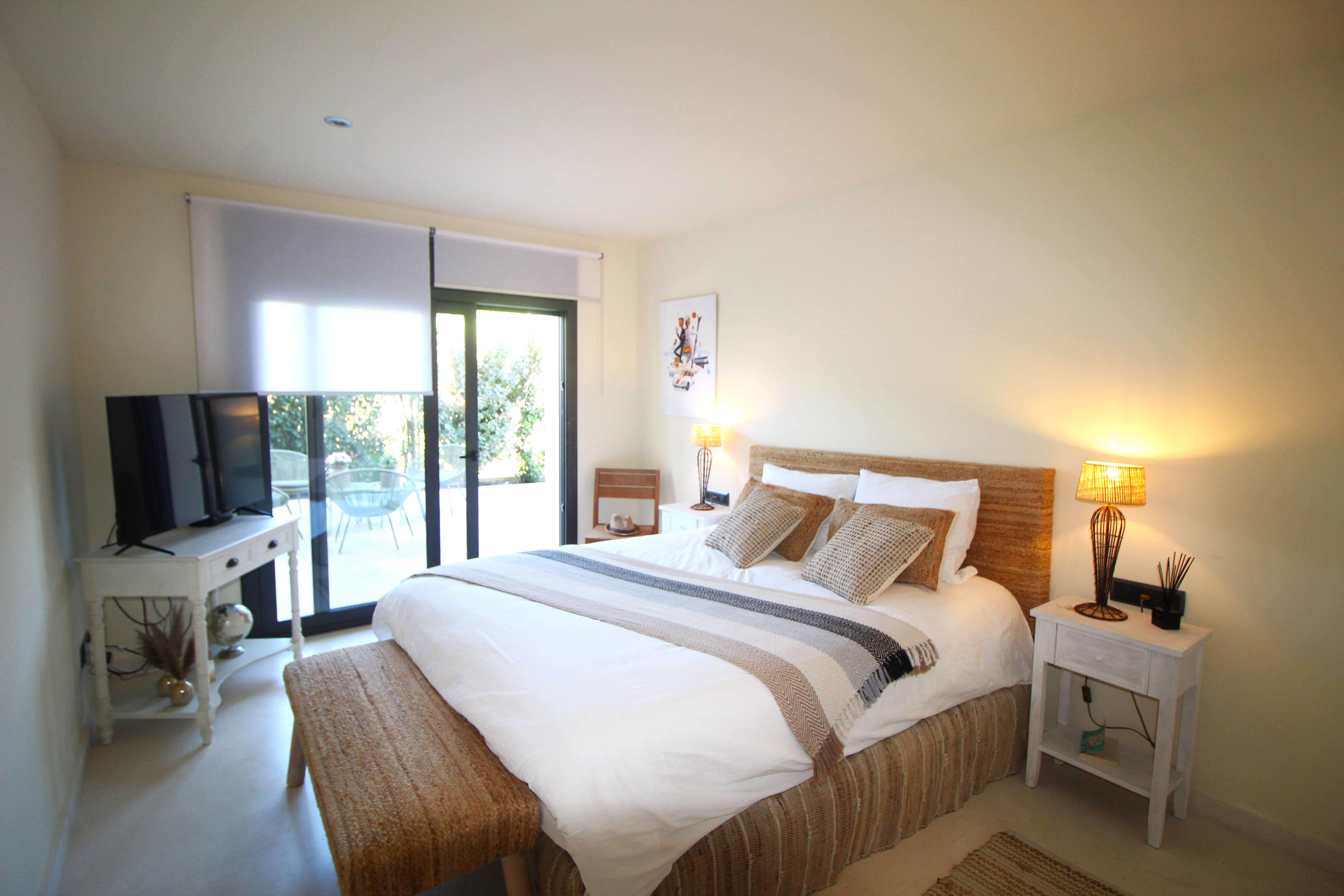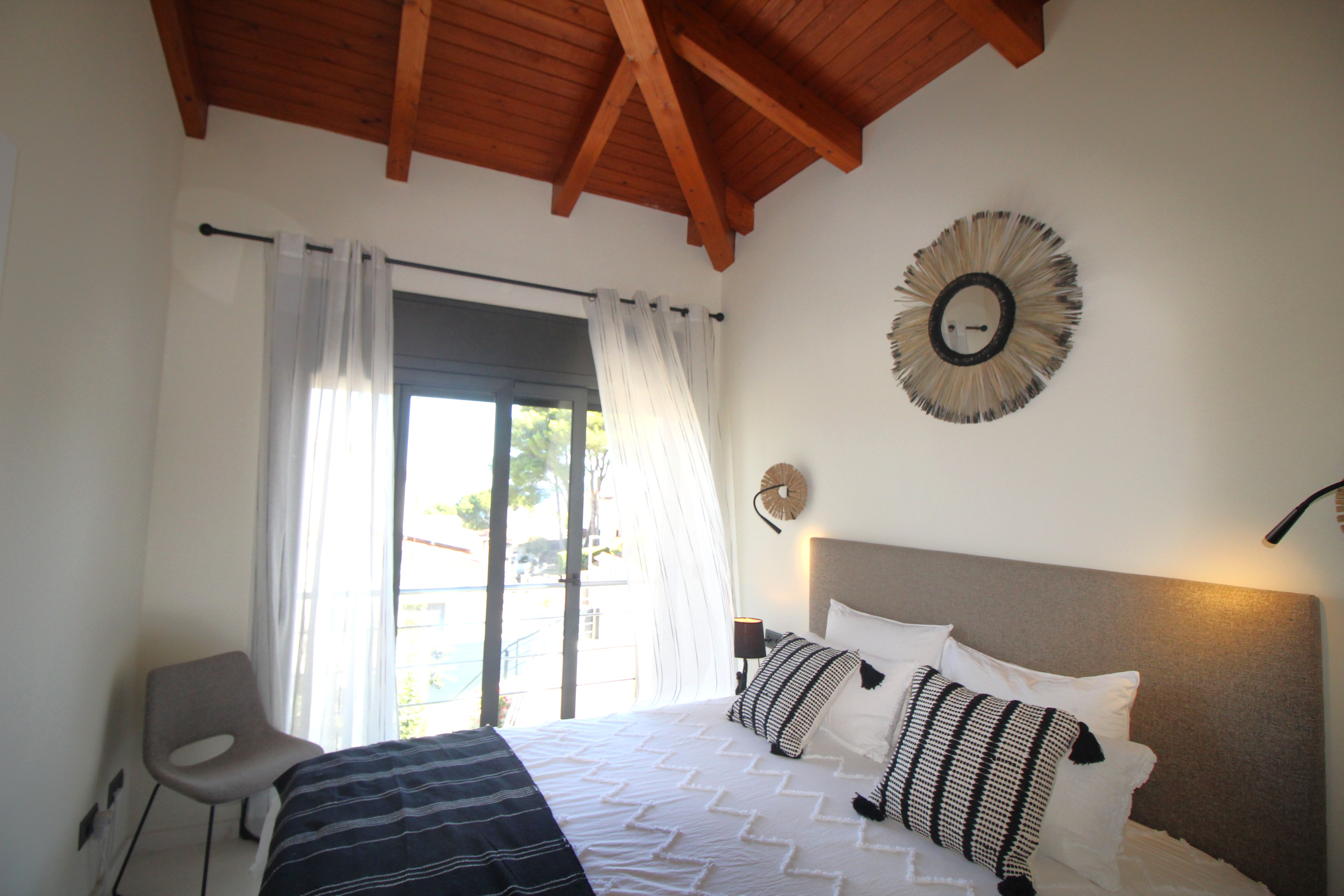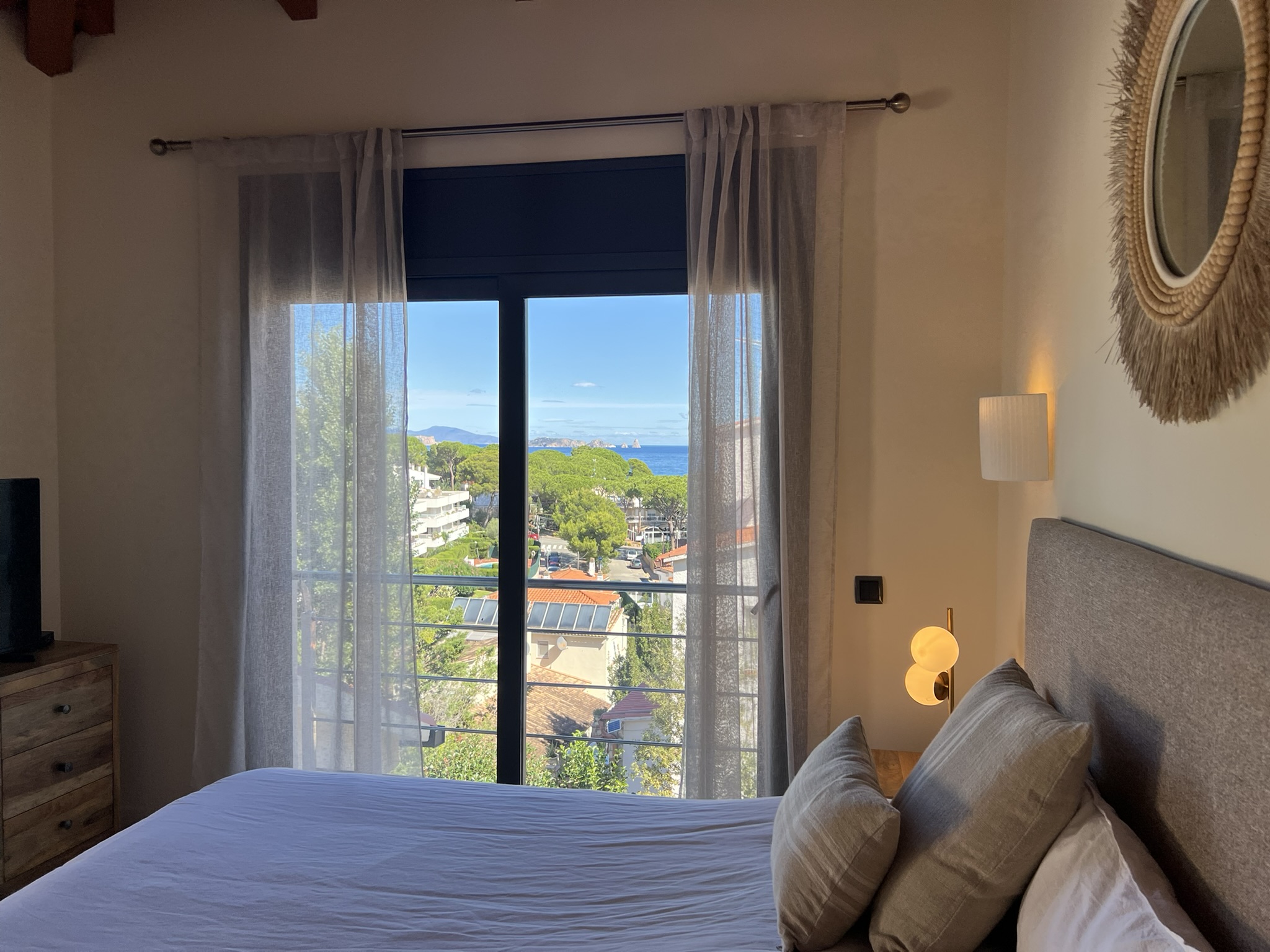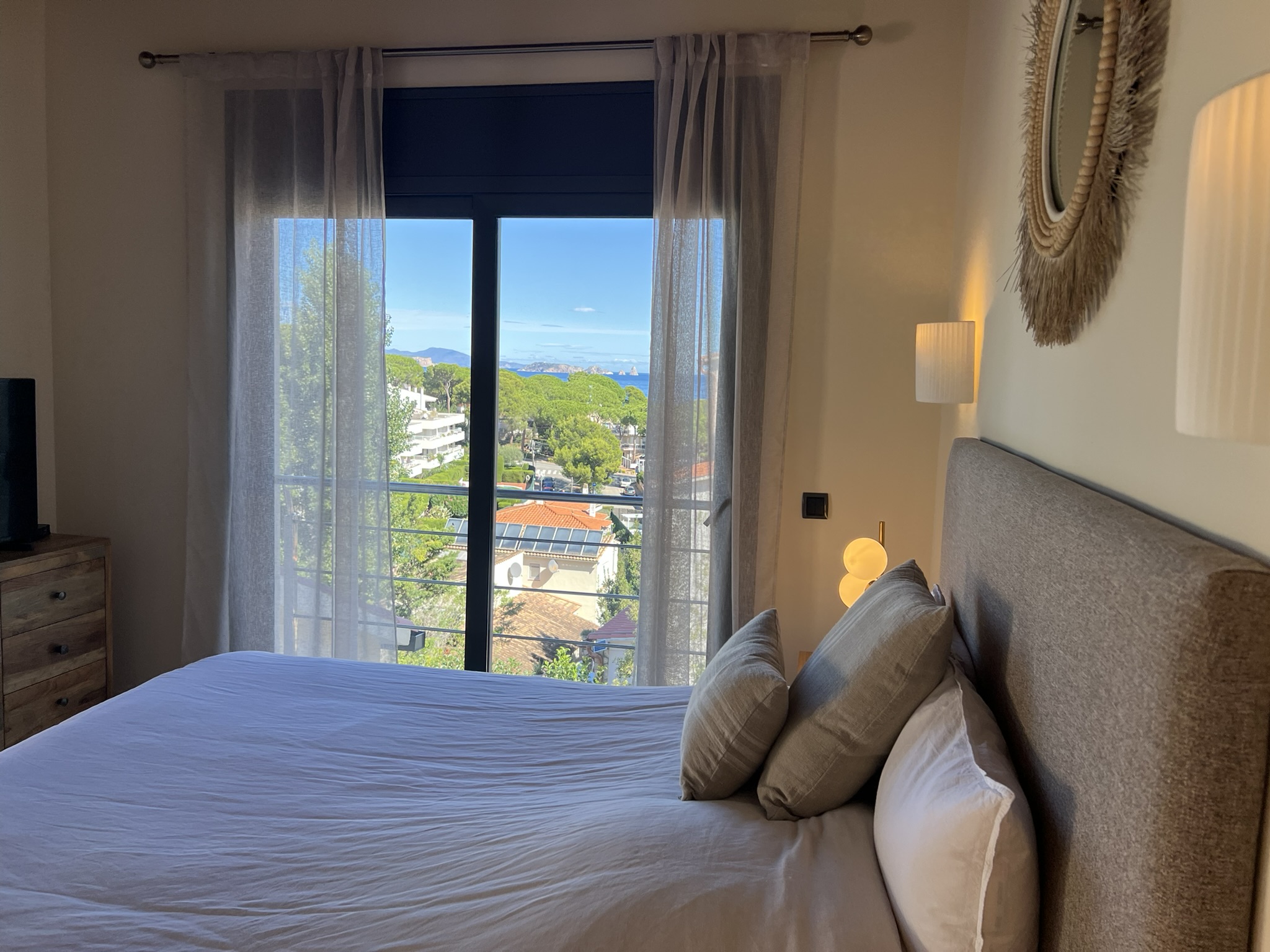 À l’étage supérieur se trouvent deux chambres doubles, chacune avec sa propre salle de bain. L’une d’elles dispose d’un dressing et d’un accès à une terrasse avec vue sur la mer et les îles Medes.