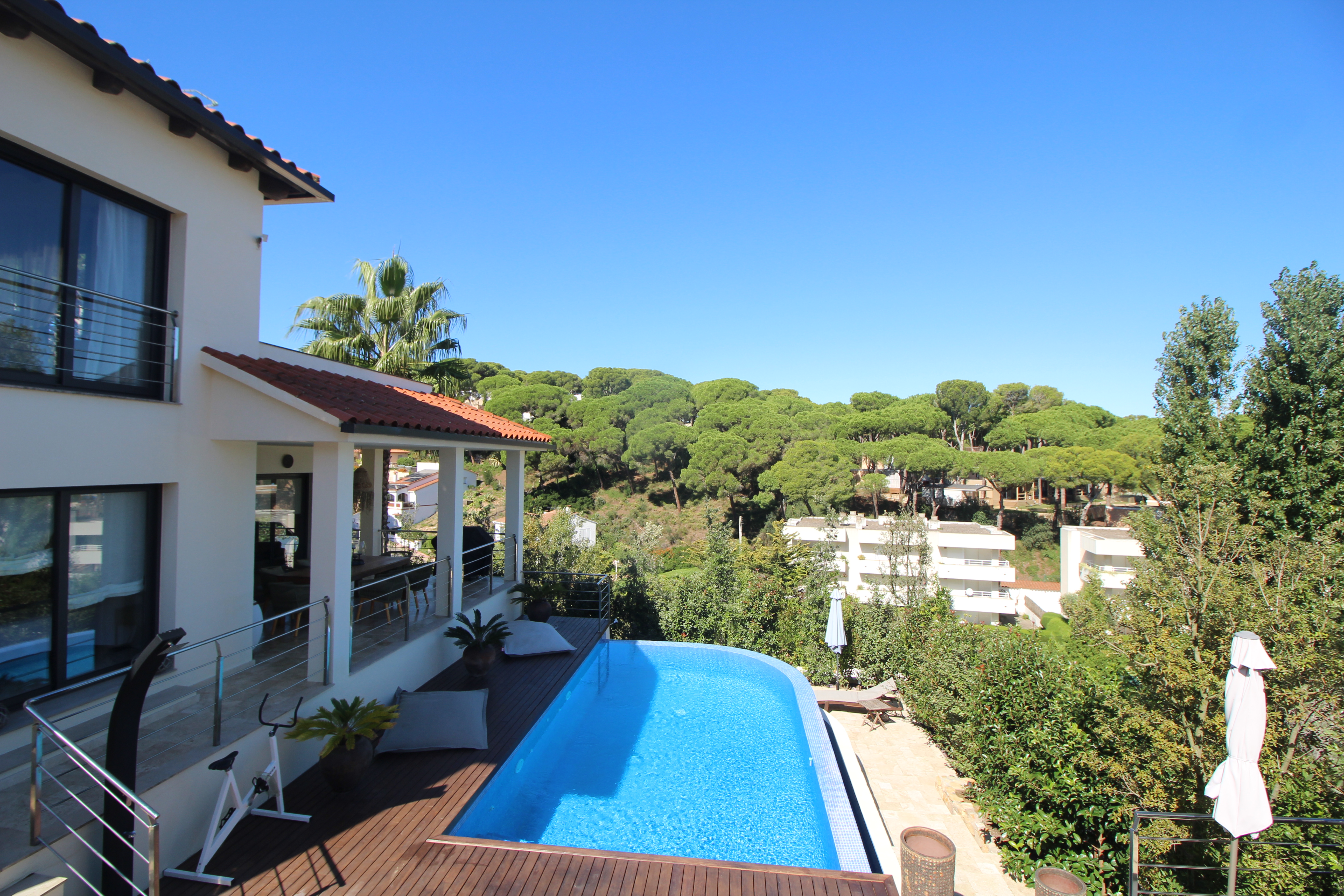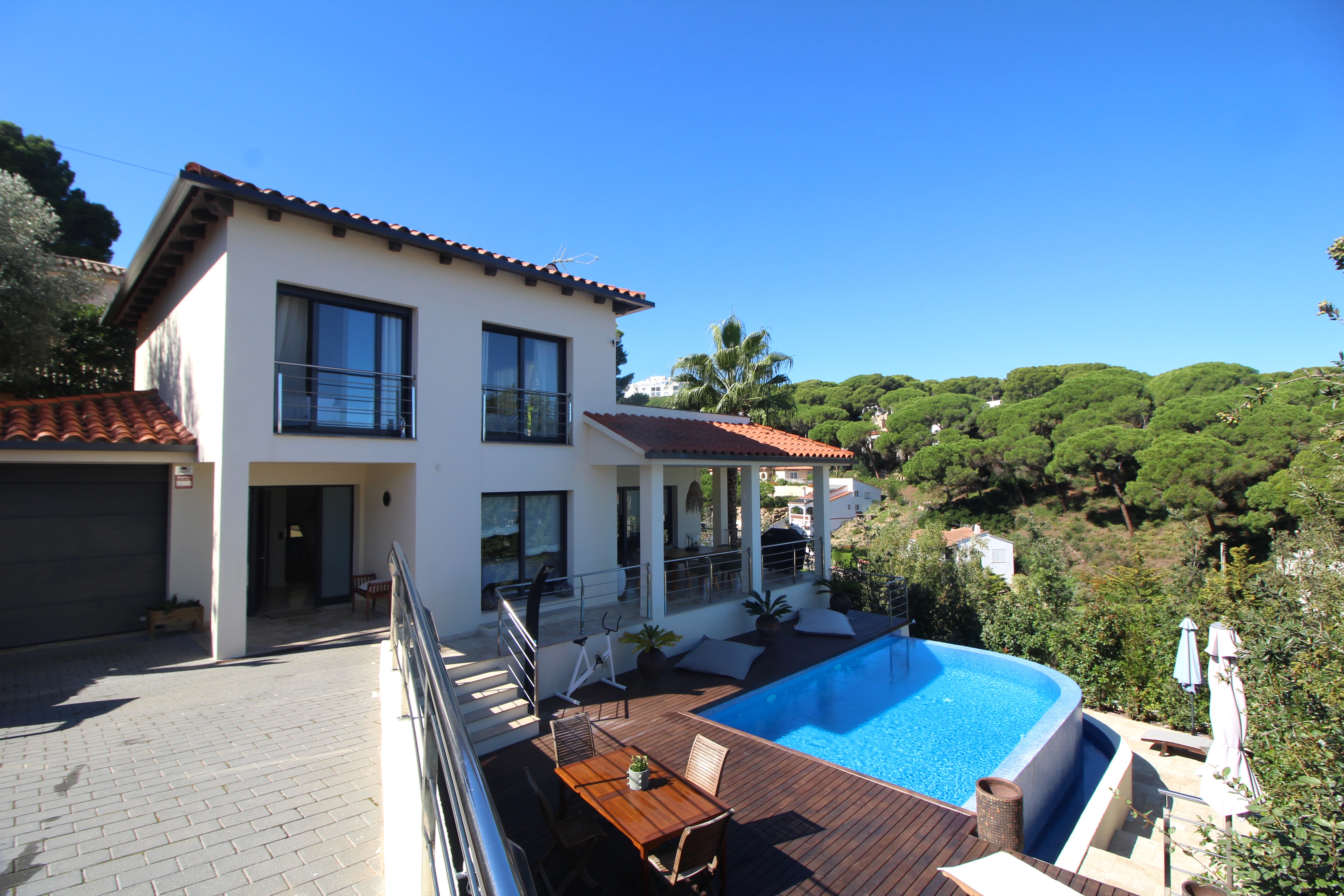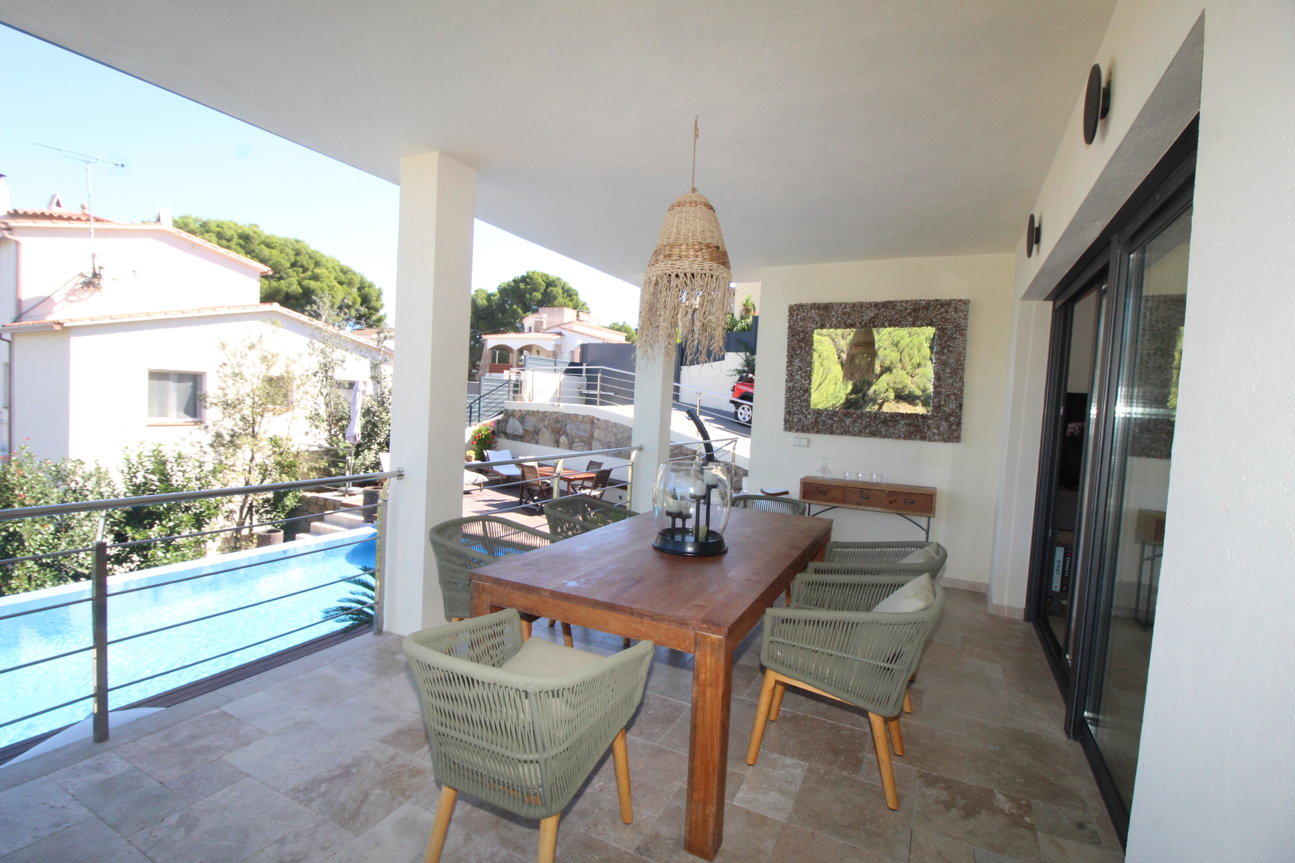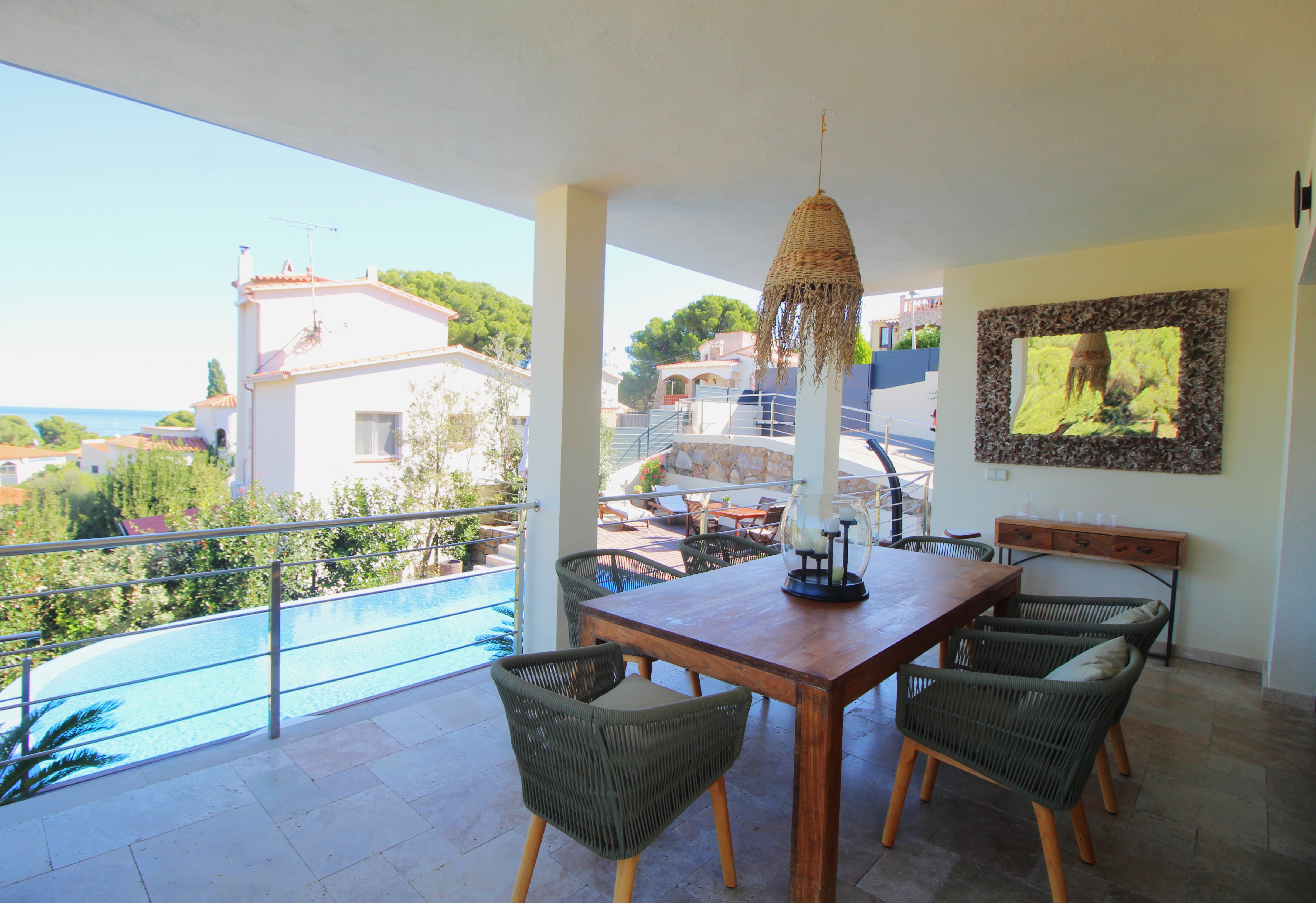 L’espace extérieur comprend une terrasse couverte pratique ainsi que plusieurs espaces chill-out autour de la piscine privée, conçus pour profiter du soleil et du climat agréable de la Costa Brava à tout moment de la journée.