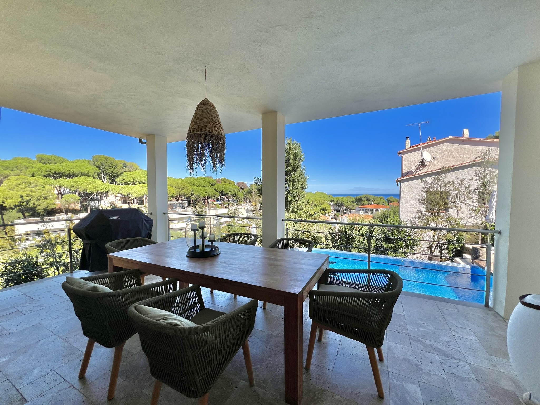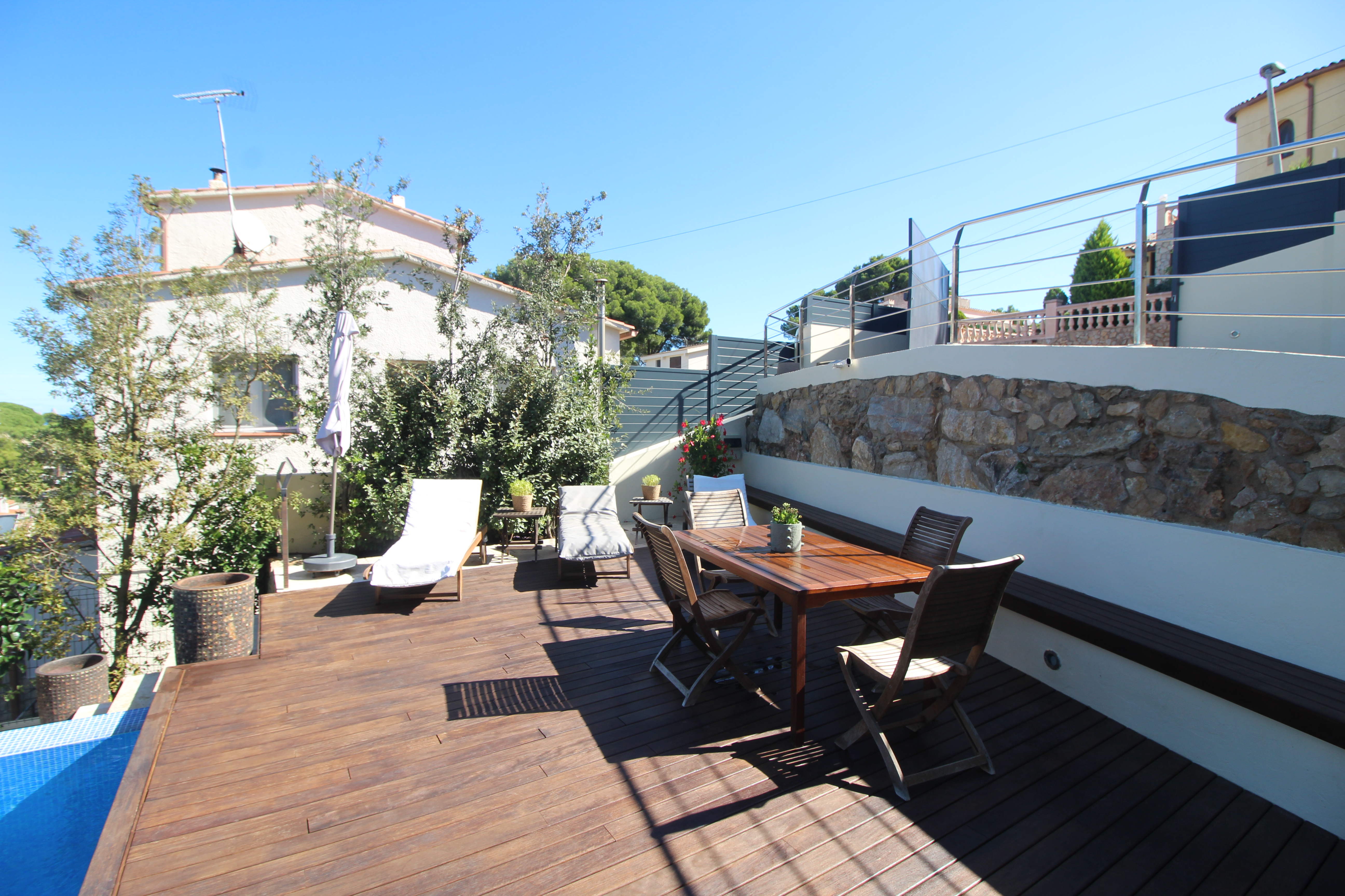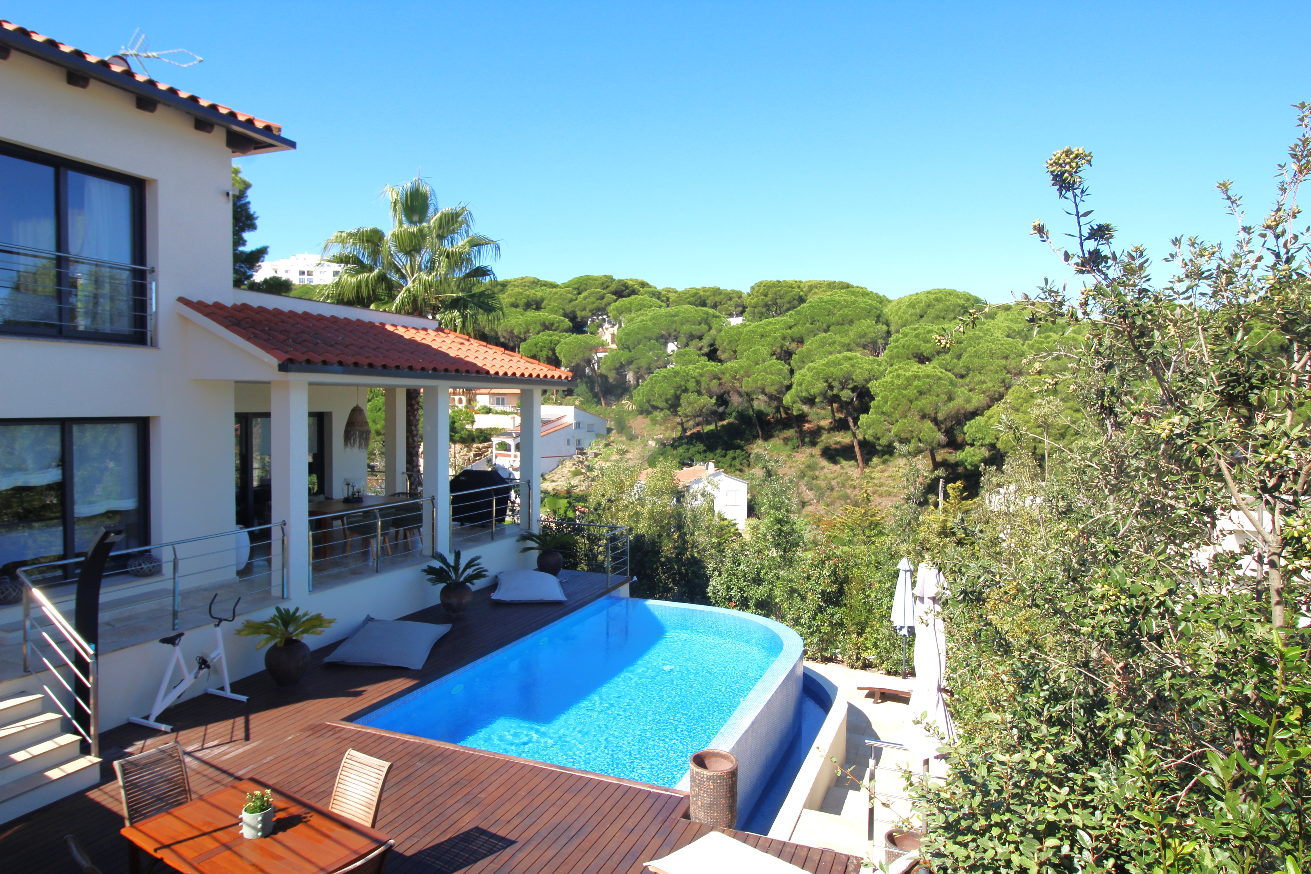 L’espace extérieur comprend une terrasse couverte pratique ainsi que plusieurs espaces chill-out autour de la piscine privée, conçus pour profiter du soleil et du climat agréable de la Costa Brava à tout moment de la journée.