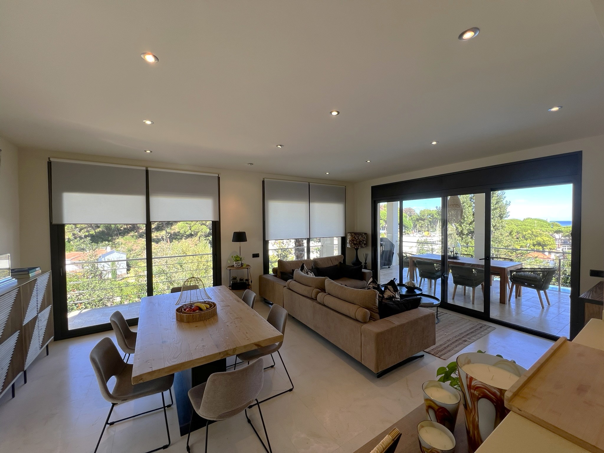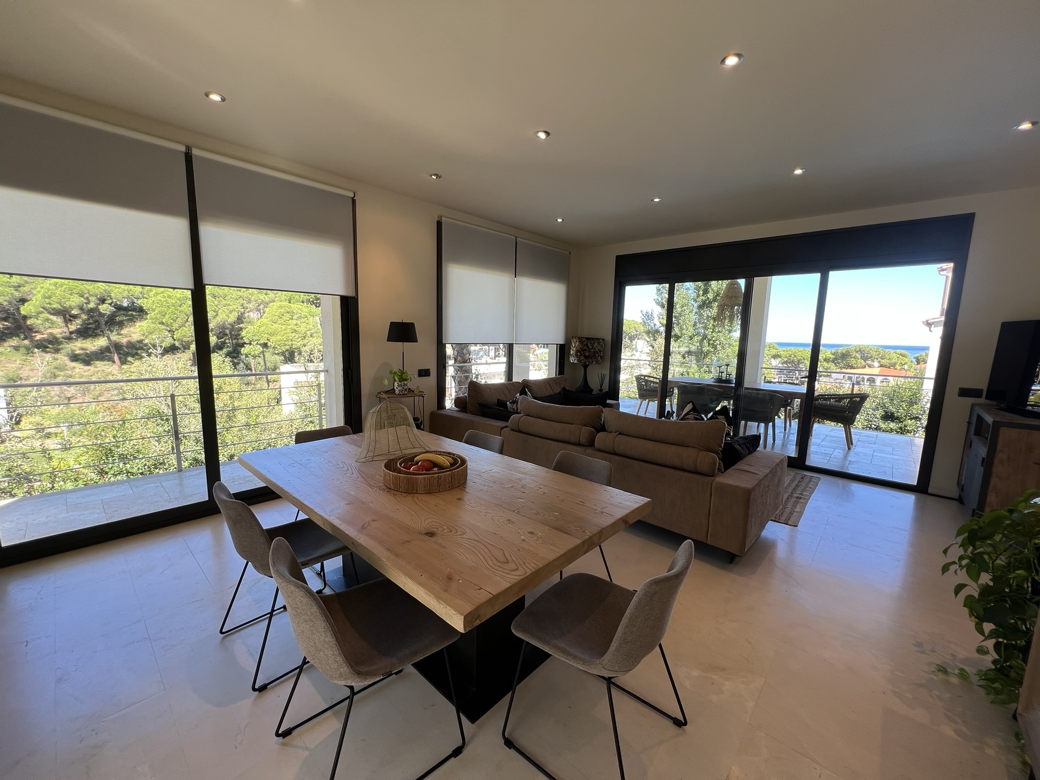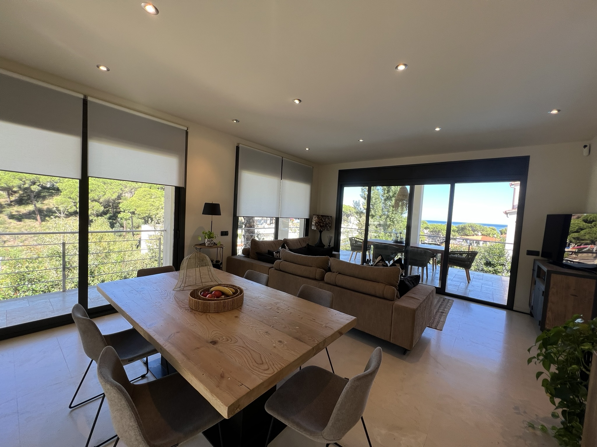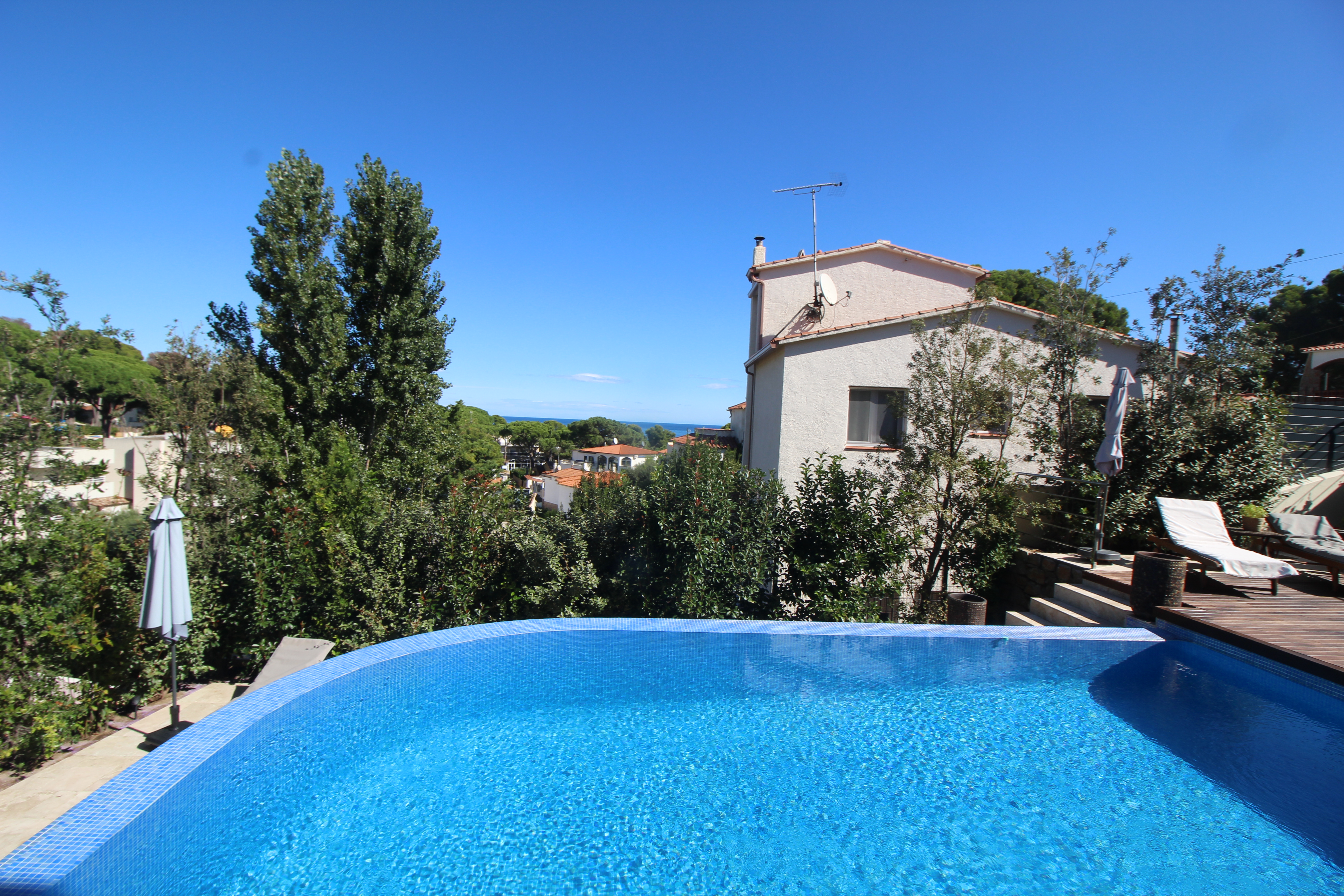 L’espace extérieur comprend une terrasse couverte pratique ainsi que plusieurs espaces chill-out autour de la piscine privée, conçus pour profiter du soleil et du climat agréable de la Costa Brava à tout moment de la journée.