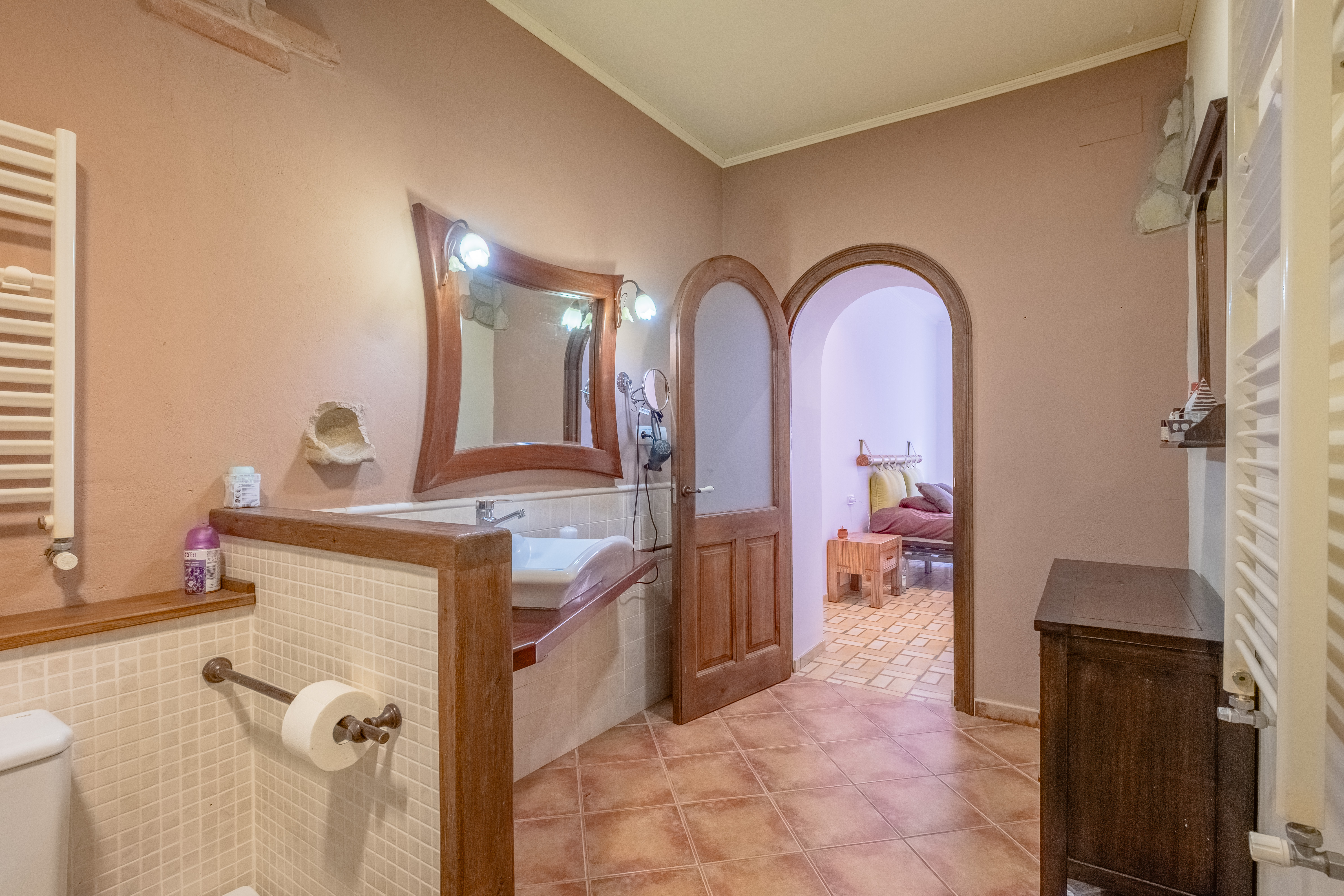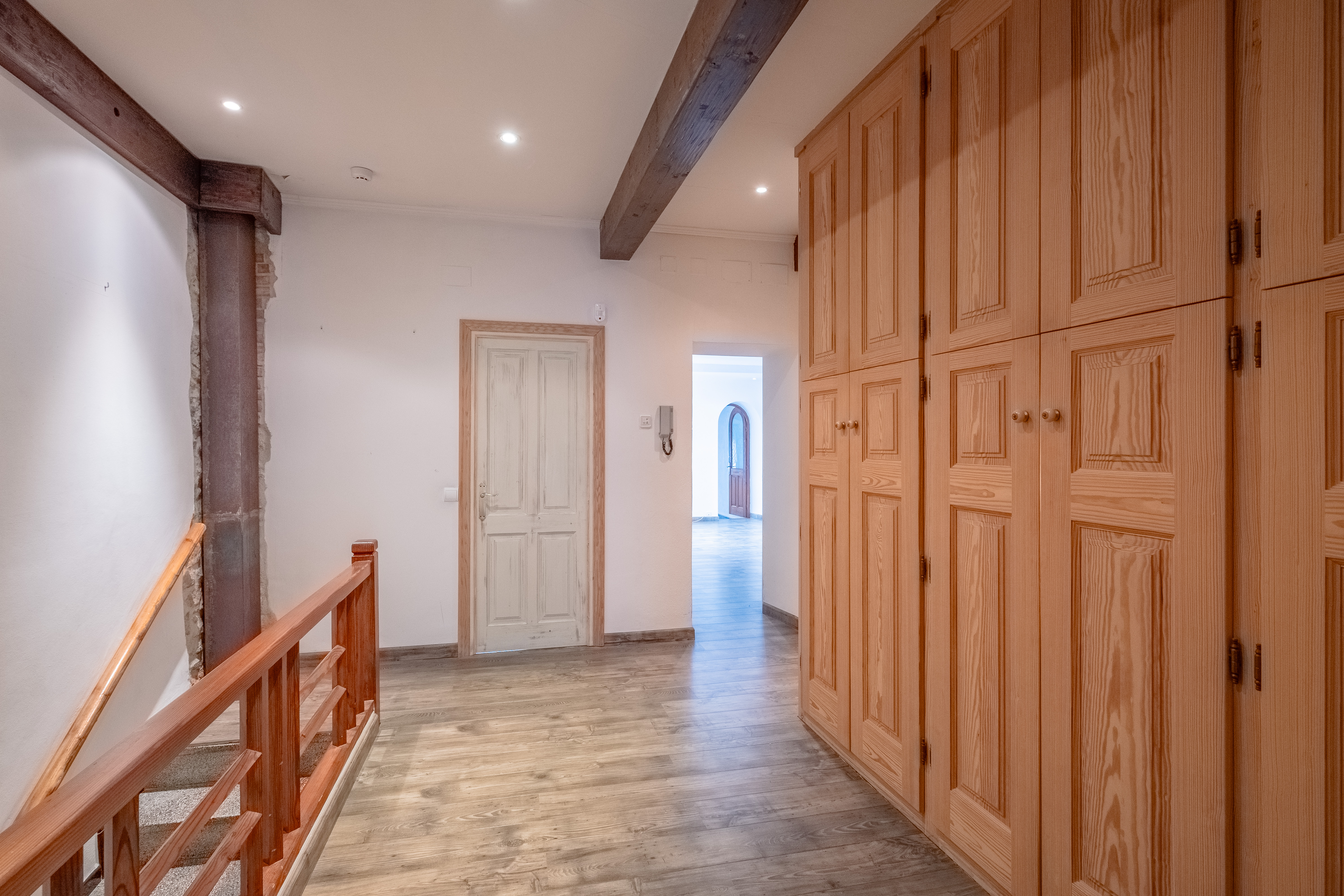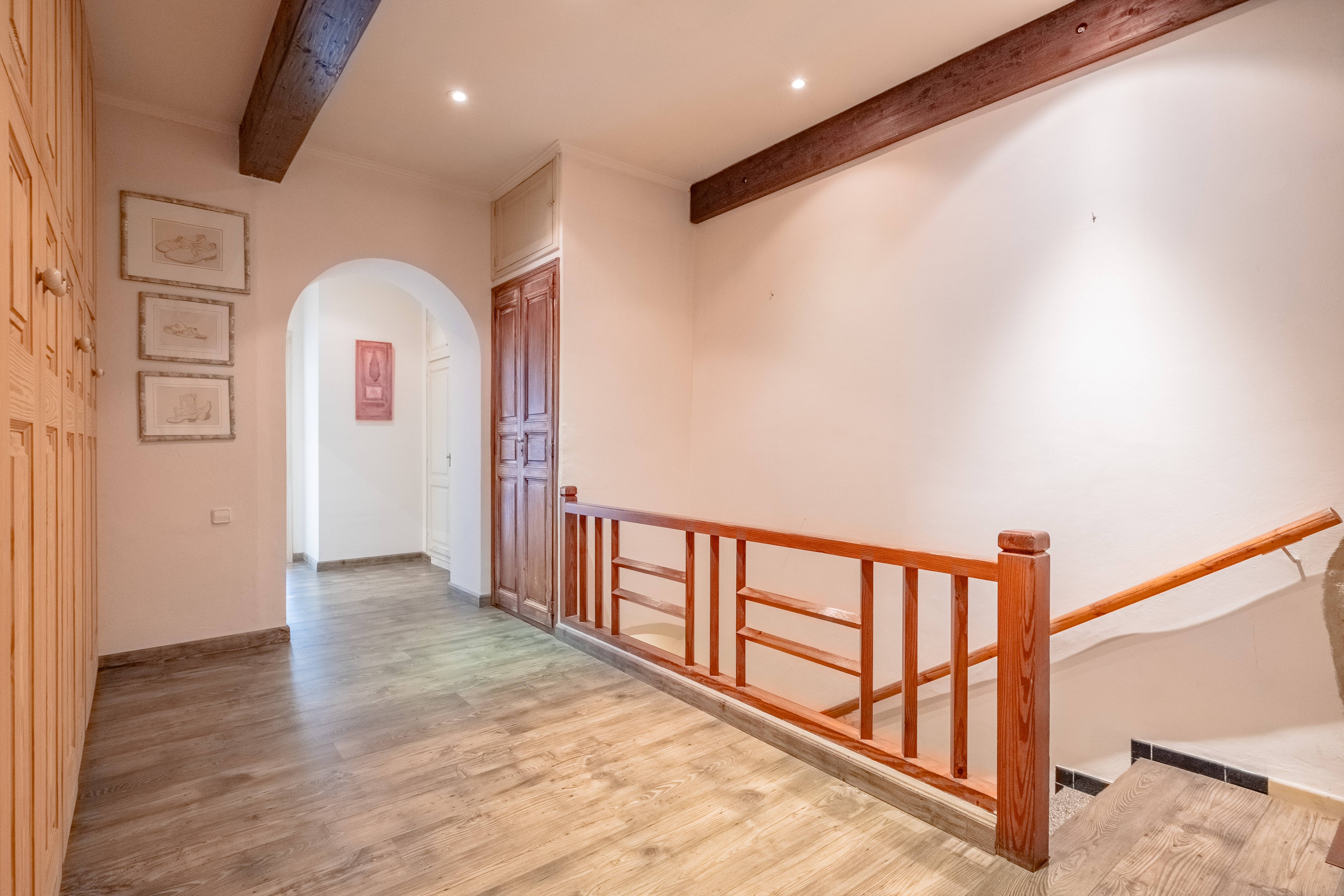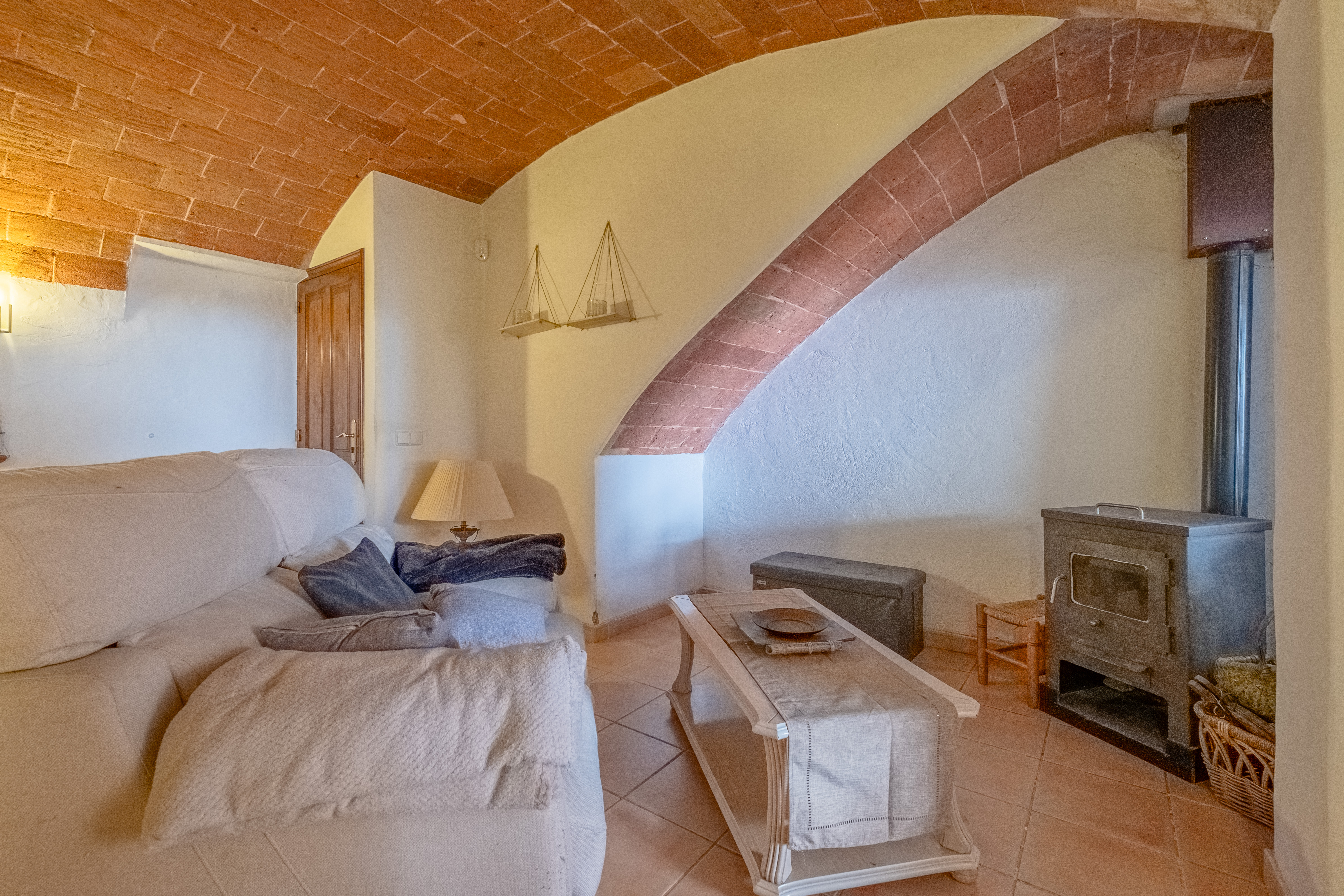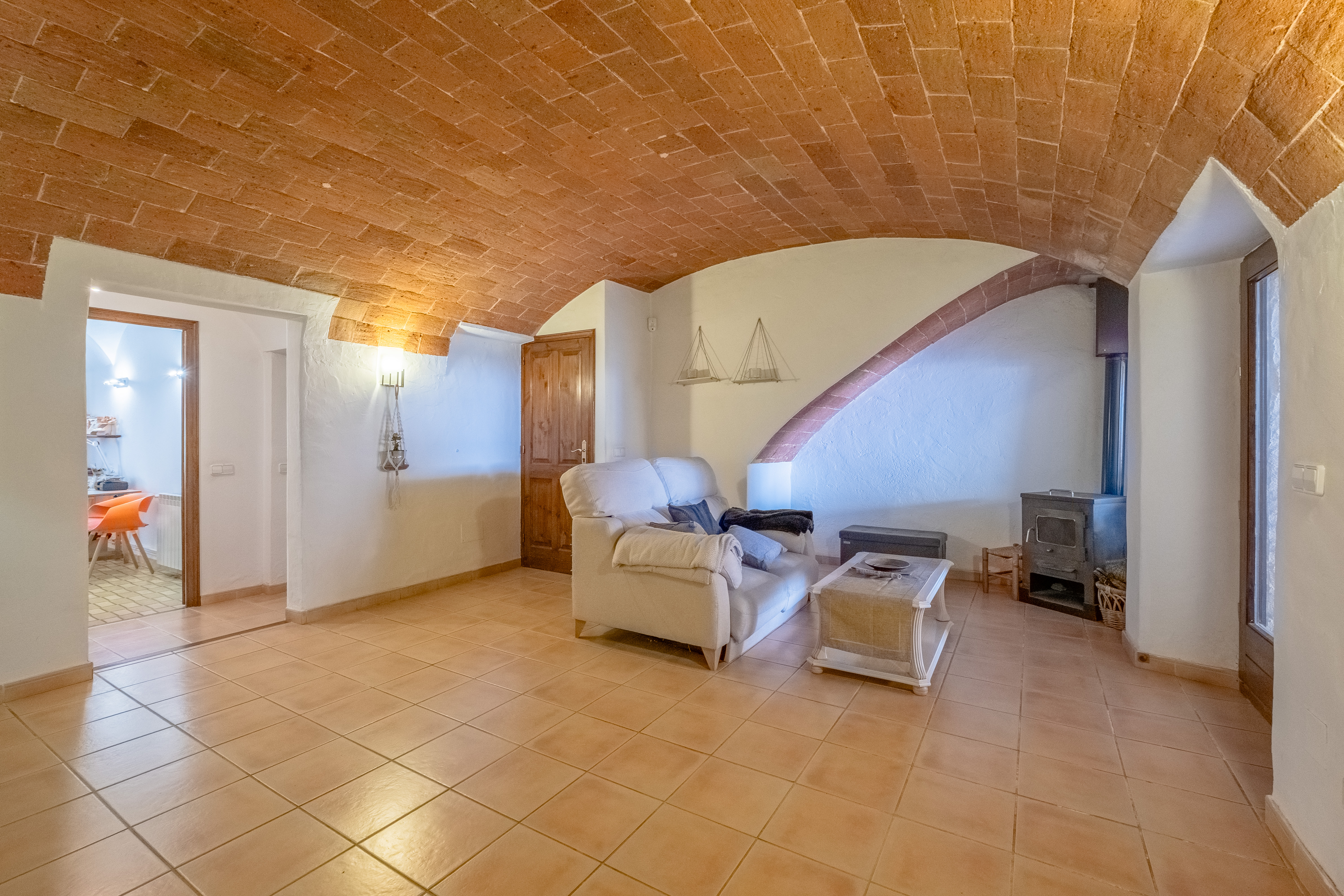 La maison est jumelé et est construite sur deux étages. Le rez-de-chaussée est réparti dans un grand hall avec "volta caltana", une pièce qui remplit actuellement les fonctions de bureau, toilettes, salon avec poêle à bois d’environ 25 m2 avec accès direct au porche et au jardin, cuisine entièrement équipée avec sortie directe sur le jardin et barbecue, salle à manger séparée avec de belles fenêtres et sortie sur le jardin. Le jardin mesure 90 m2 et se compose d'une zone de barcacoa. Possibilité de construire une petite piscine. Dans la premier étage un hall d'entrée avec armoires encastrées distribue le reste des chambres: 2 très grandes chambres doubles avec des placards, 1 salle de bain complète avec baignoire, 1 chambre qui est actuellement une petite salle de sport, 1 suite avec salle de bains incluse. La maison a du chauffage au mazout, la chaussée intérieure est en grès rustique et la menuiserie extérieure est en bois noble avec double vitrage, la maison a de "volta catalana".